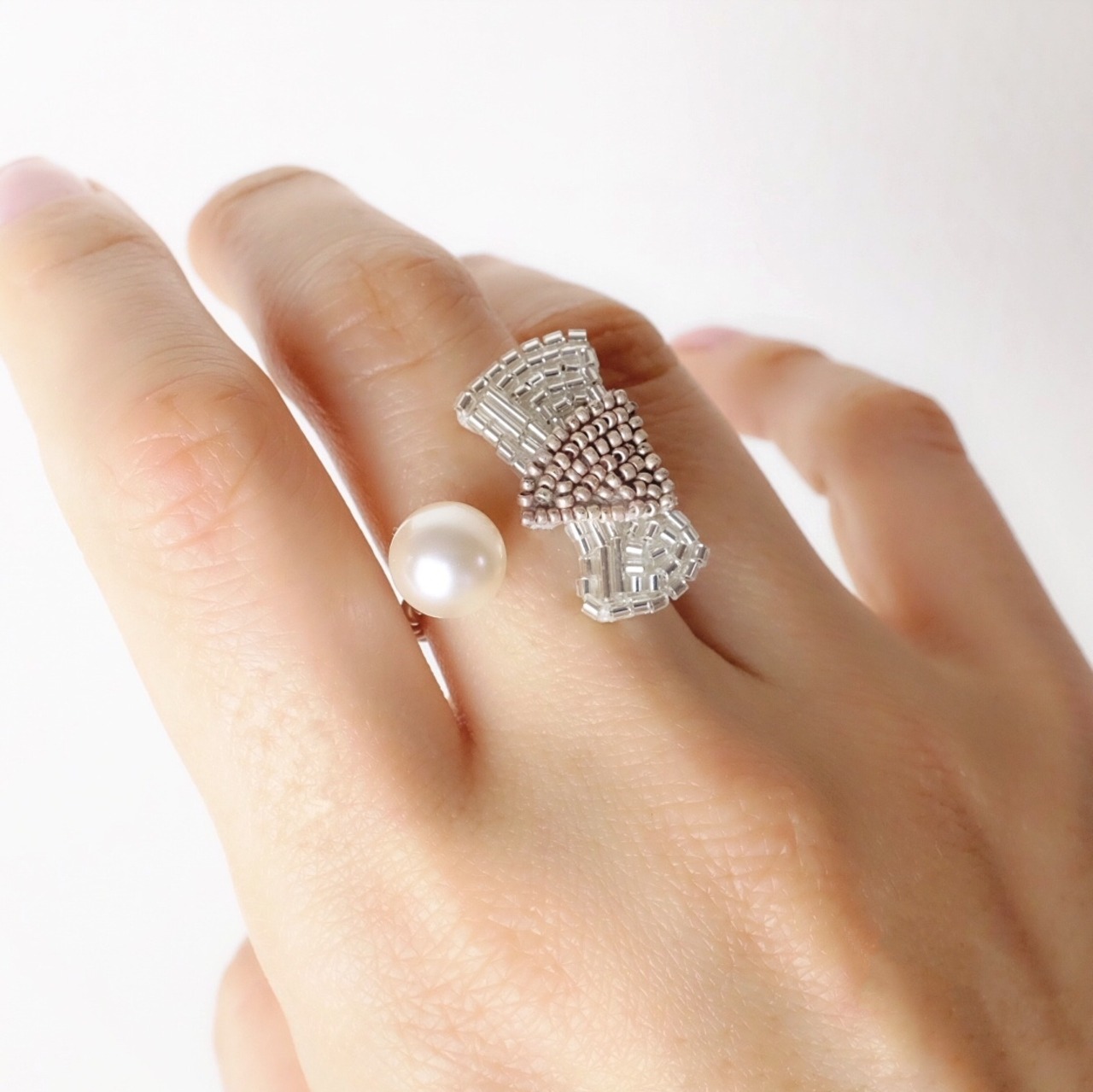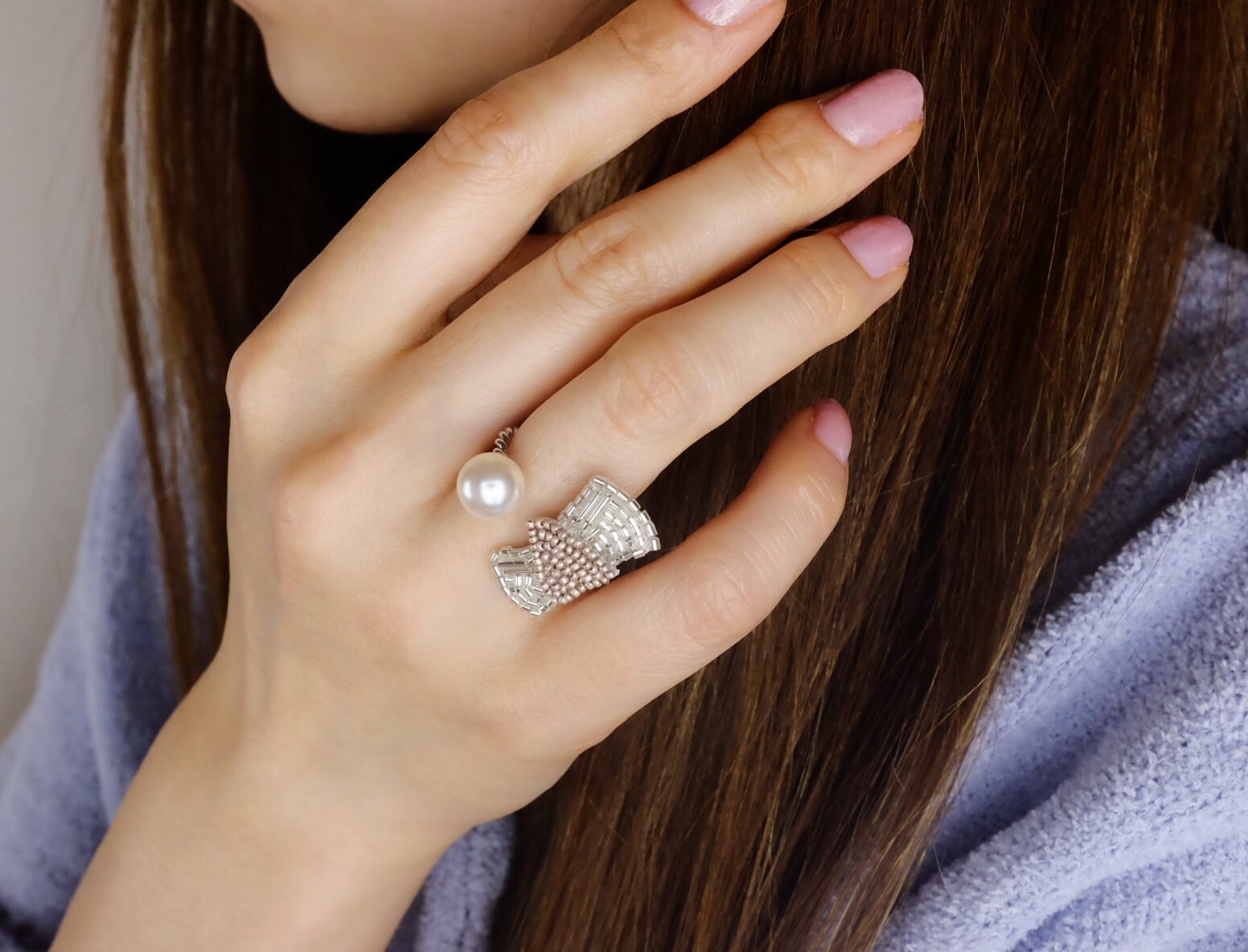 スワロフスキー製のパールとビーズの質感の違いがお互いを引き立て合います。