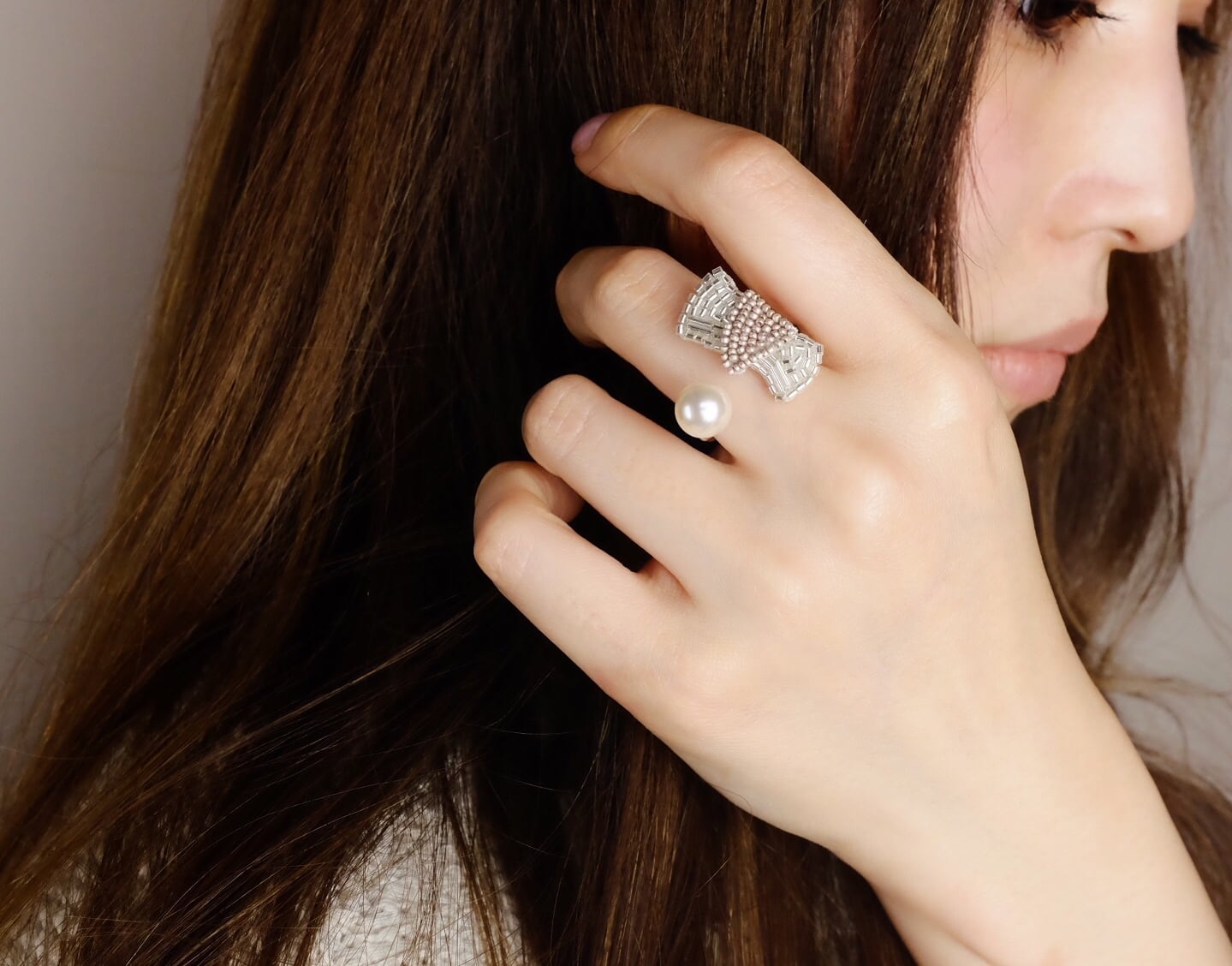 、その日の気分・ファッションに合わせた指で楽しんでいただけます。(個人差があります。) そして着けた指・向きによっても指輪の印象が少しずつ変わって見え、幅も広がります。