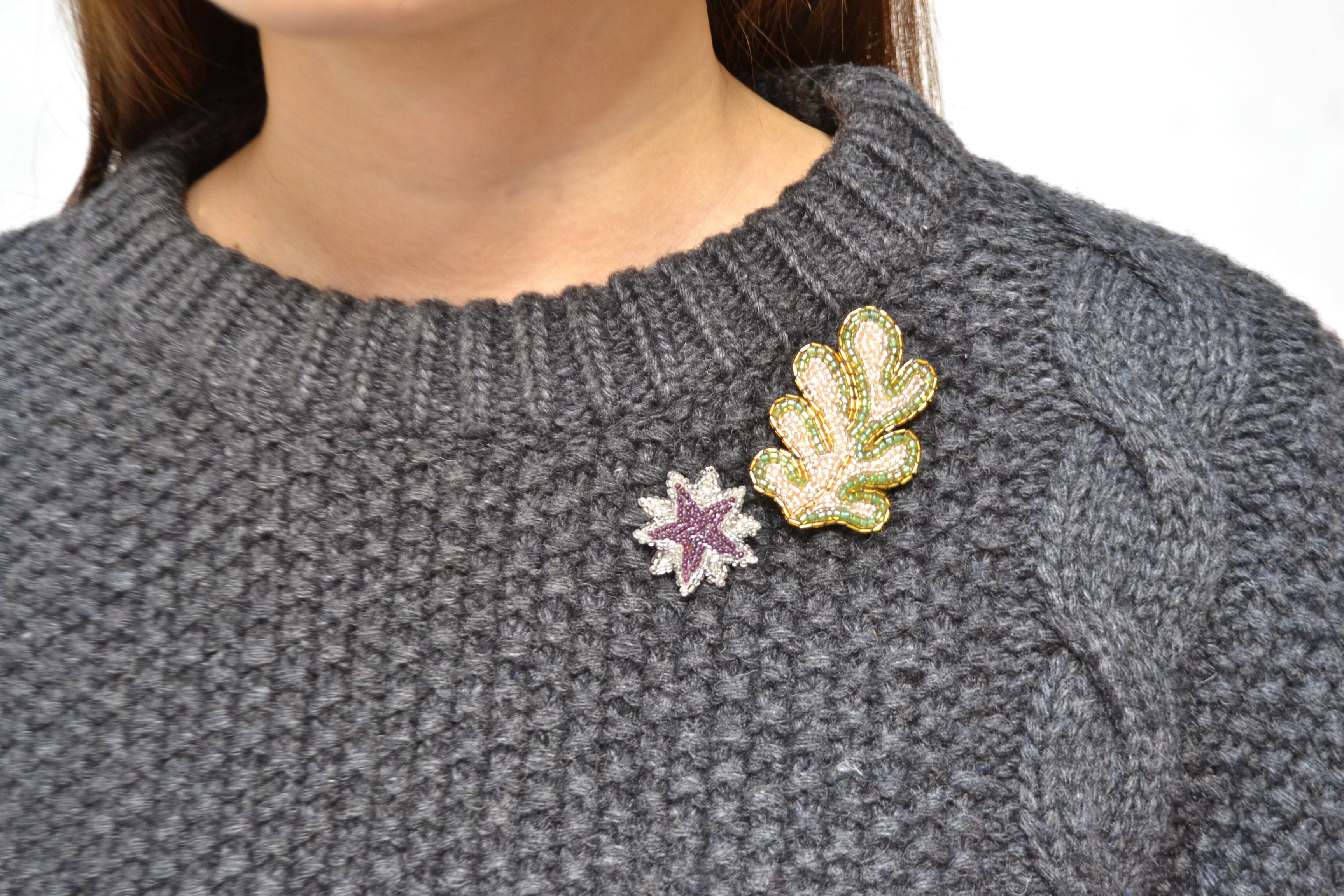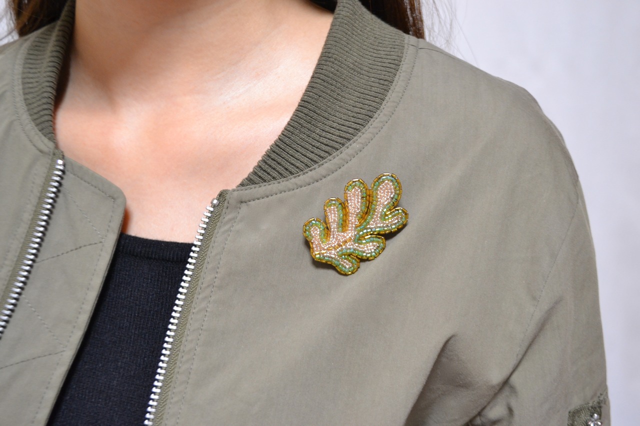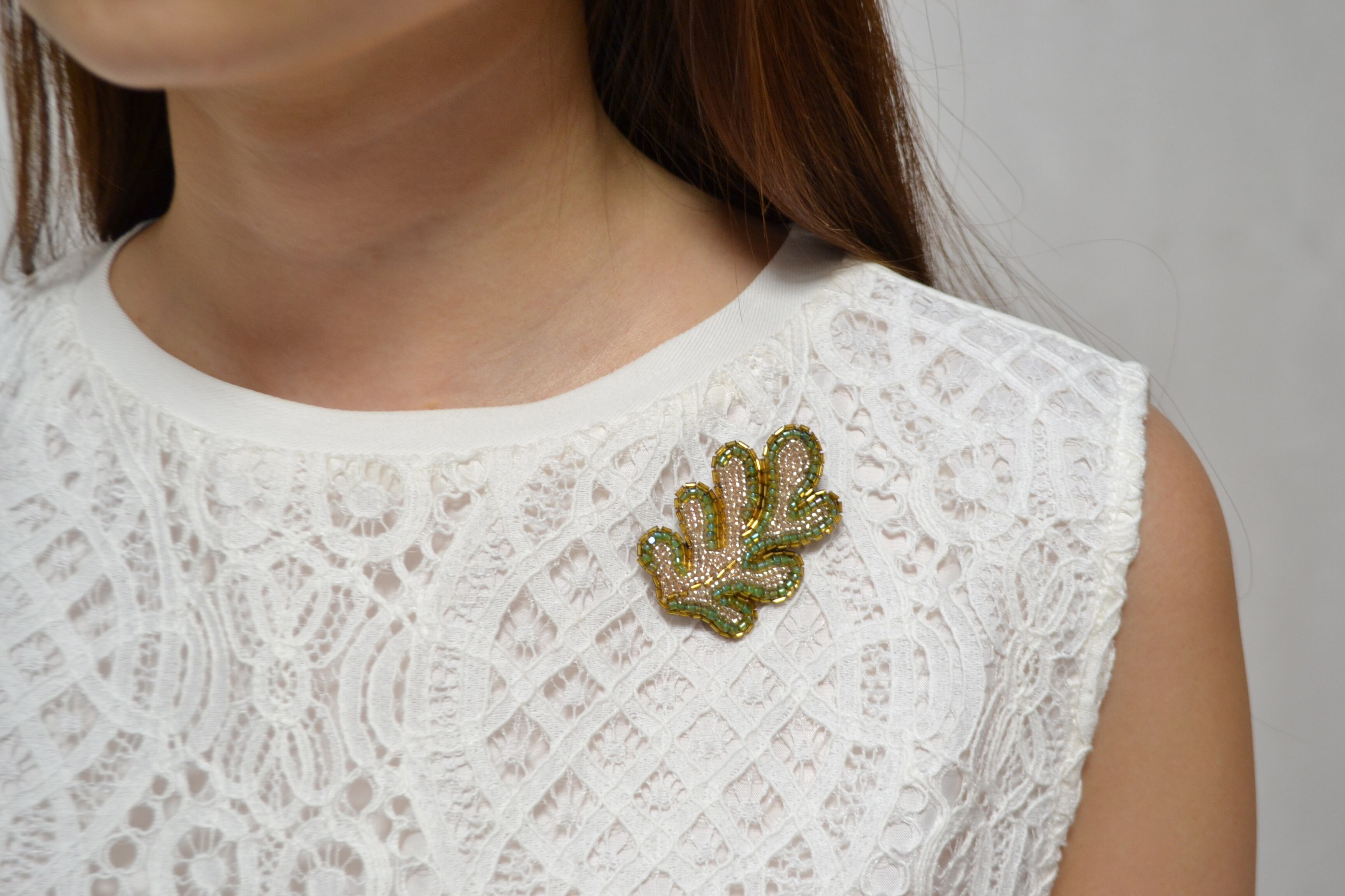 ヴェルサイユ宮殿にある家具の模様からインスピレーションを得て制作したブローチ。