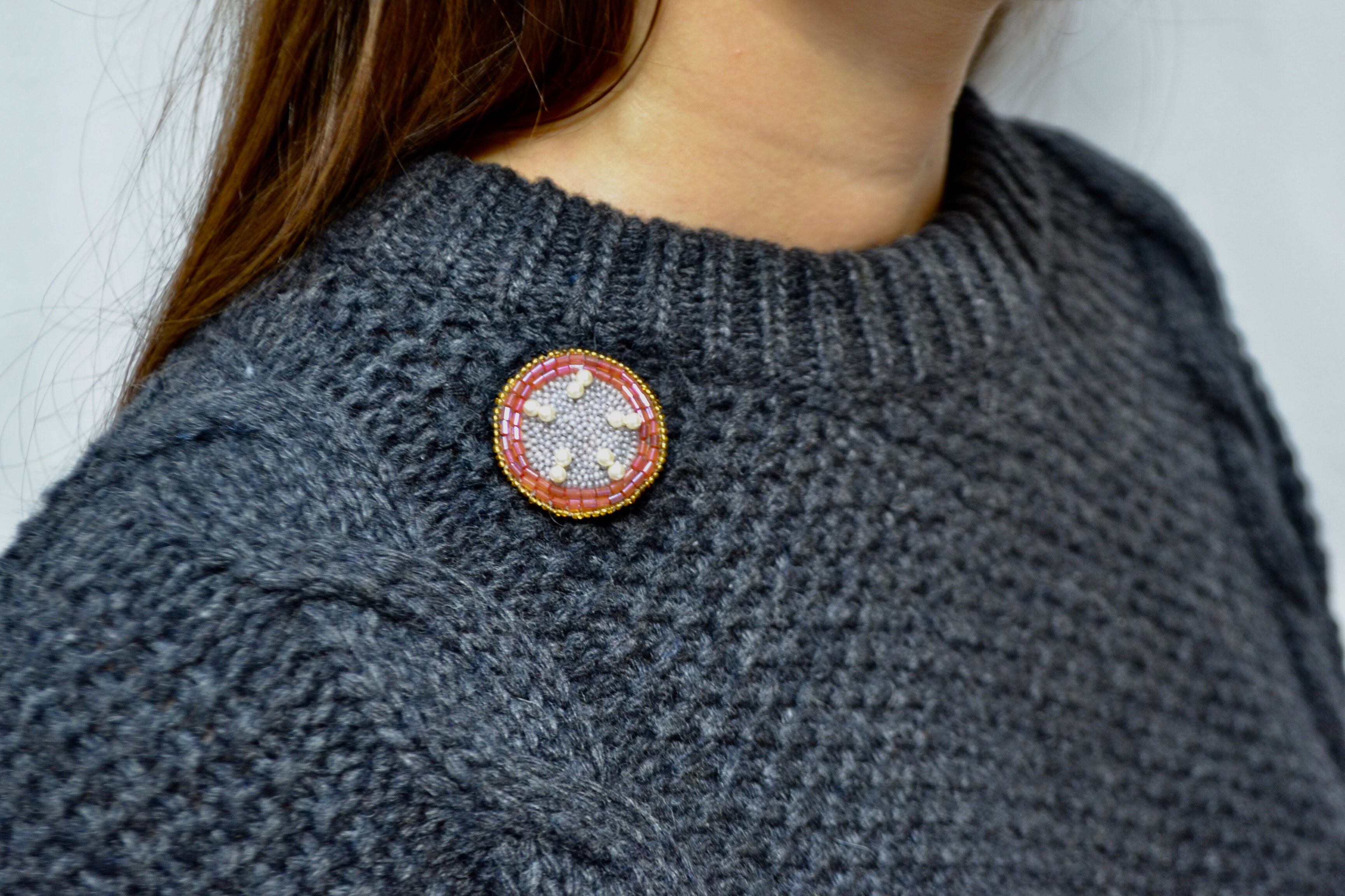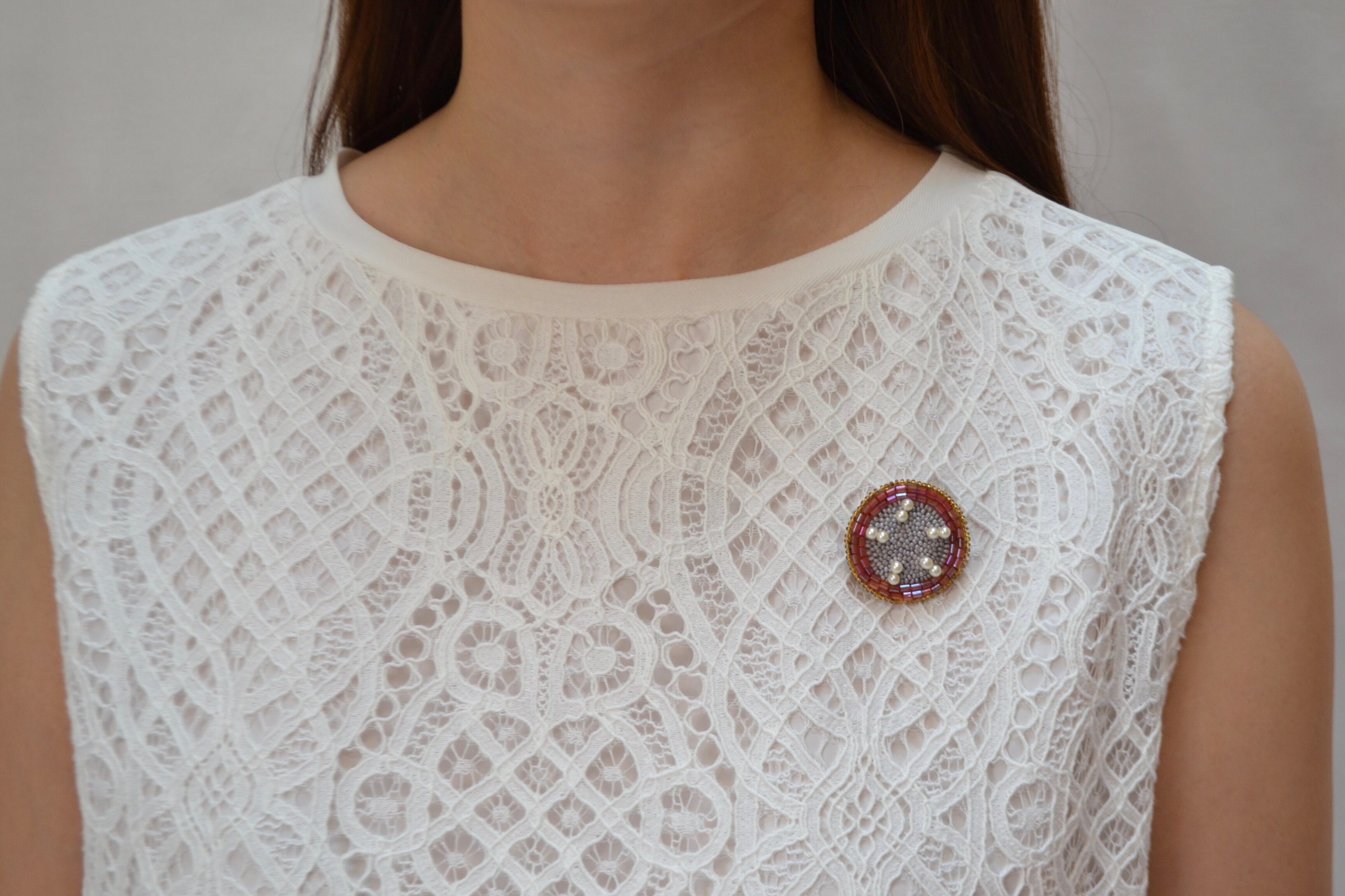 サークルをあえてフリーハンドで描くことでアンティークの持つ味を引き出したブローチです。